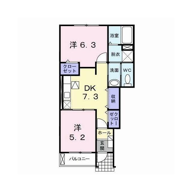 | 間取り | 2DK(洋5.2・洋6.3・DK7.3) | 主要採光面 | - |
